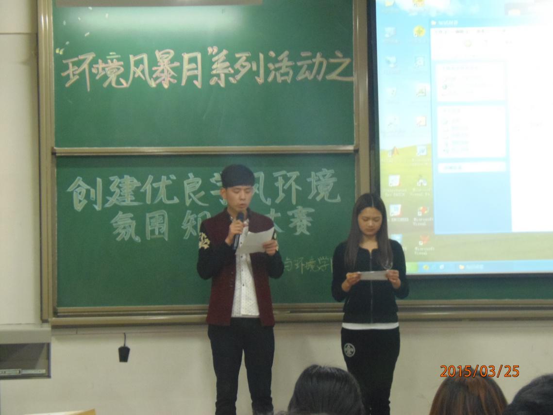 3月25日,以“创建优良学风环境氛围”为主题的环境头脑风暴知识竞赛在教学楼1234教室举办。比赛分为团队答题和个人轮番答题两个环节。选手们积极参与,展现了他们深厚的文化积累以及对生活常识的了解与认识。