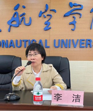 李洁作为教师代表发言,对新生提出了殷切的期望,希望同学们尽快掌握融入大学生活,找到适合自己的学习方法,认真修好每一门课,积极参与学校的课余活动,强化学习意识、学以致用,并祝愿所有新生学业顺利。