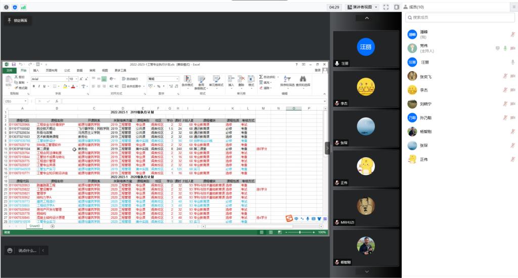 首先党伟老师将下学期工程管理专业各年级教学任务进行了梳理,将《西航教通字[2002]16号文件》中关于教学任务、教学进程编排工作的精神向各位教师进行了传达,按照相关要求完成了教学任务的分配工作。之后参照《管理科学与工程类教学质量国家标准》,教研室重点对2019级和2021级工程管理专业人才培养方案中各模块课程的设置进行了逐一研讨,给出了修订意见。会议最后,教研室各位教师对本学期教学工作中存在的问题和建议进行了反馈。