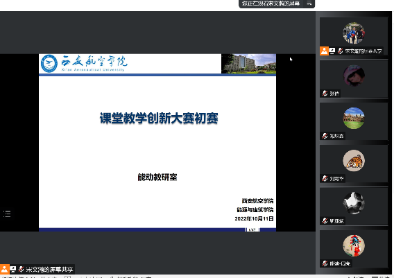 2022年10月11日20:00,能动教研室全体教师在腾讯会议线上举行了以“新理念·新方法·新课堂”为题的课堂教学创新大赛初赛,目的是选拔优秀教师代表教研室参加学院决赛。比赛由教研室主任宋文瀚主持。