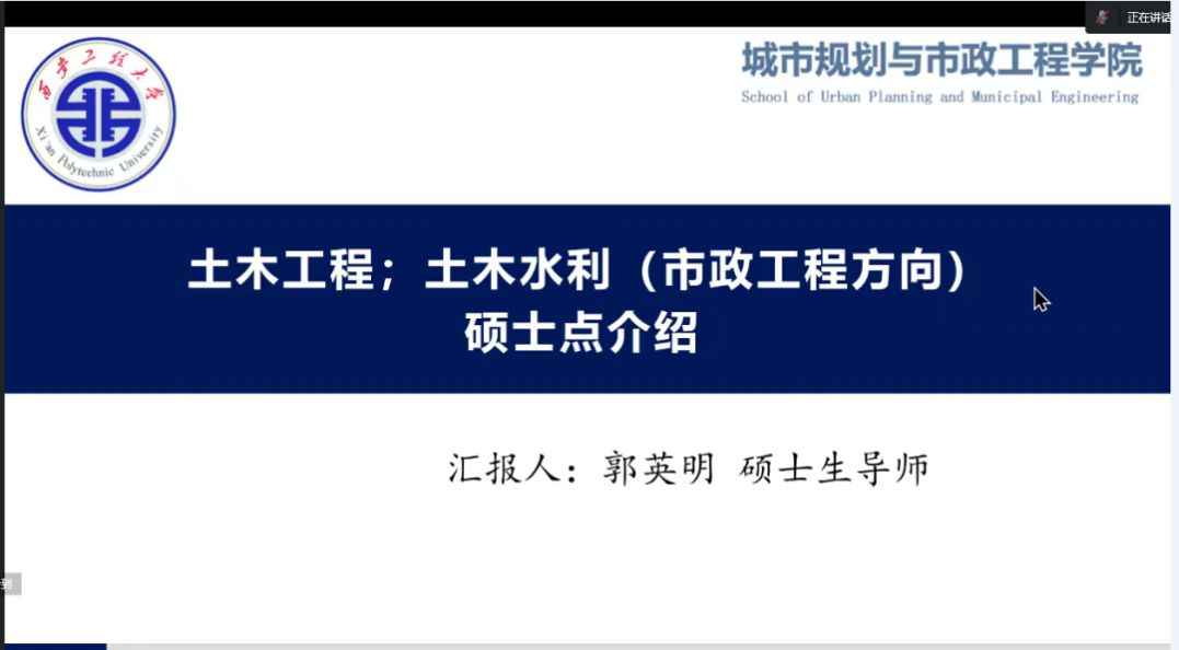 在看完城市规划与市政工程学院宣传片后,强天伟对学院的发展历程、办学规模、研究生管理工作做全面介绍。孙铁柱、郭英明分别针对建筑环境与能源应用工程系、市政工程系的学科建设、师资队伍、学术成果、实验室条件、报考指南、研究生培养及奖学金设置等方面进行了宣讲,并就学生提出的相关问题进行了交流。