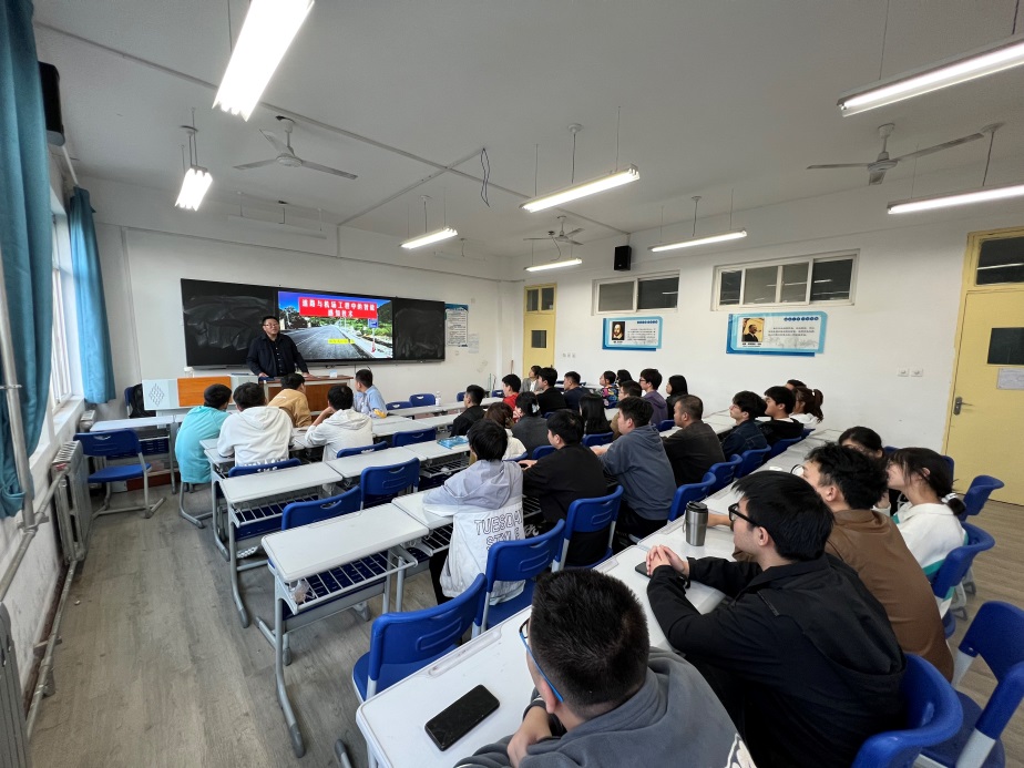 本次活动分三个主题进行。第一个主题是“教授话前沿”,由能源与建筑学院副院长张琛教授开讲。张琛教授立足团队研究方向,以“道路与机场工程中的智能感知技术”为题为学生们普及了智能感知技术在交通基础设施建设中的应用现状与发展前景。张琛教授强调在数字化、智慧化和信息化的驱动下,各专业之间的壁垒在不断的削弱,学科融合的趋势不断增强,他向同学们讲解了远程智能监测技术在土建构造物中的应用,让同学们对智能感知技术的目前现状与未来方向有了了解。