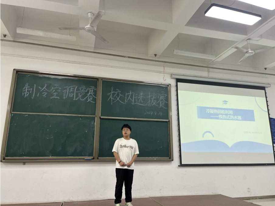 2024年4月24日下午,能源与建筑学院在阎良校区阎阶梯五教室举办了“中国制冷空调行业大学生科技竞赛校内选拔赛”,我院建筑环境与能源应用工程专业等17组团队共85名同学参加了本次竞赛,大赛设一等奖1个、二等奖2个、三等奖3个,优秀奖若干。本次大赛旨在锻炼同学们创新思维,为学生提供展示自己想法和创意的平台,并为全国制冷空调科技大赛选拔优秀人才。大赛邀请杜芳莉,何文博、王巧宁等老师担任评委。