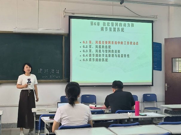 参与教师精心准备,分别选取2个课时内容进行教学展示,积极运用项目式、探究式等现代教学方法,有机融入课程思政元素,充分体现“以学生为中心”的教学理念。各教研室展现出鲜明特色:建环专业注重理论与实验教学有效融合;能动专业突出新能源技术与课程内容的深度融合;给排水专业强调生态文明建设在实践教学中的渗透;工管专业依托真实工程案例开展教学演示。每位教师展示结束后,教研室同事和院级教学督导分别从教学内容、教学方法、课堂组织及思政融入等方面进行细致点评,既充分肯定教学创新亮点,也提出了具有建设性的改进意见。