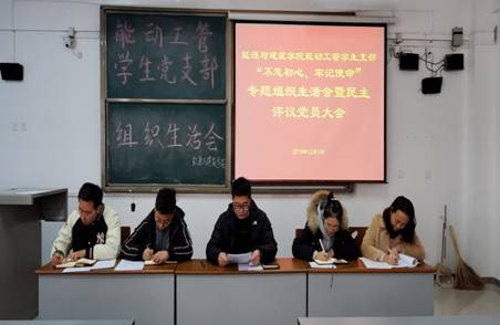 按照学院党总支统一部署安排,牢牢把握“守初心、担使命、找差距、抓落实”的总要求,深入查找基层党支部在思想作风、工作作风等方面存在的问题和不足,切实加强支部成员的作风建设。2019年12月5日中午,我院能动工管学生党支部在阎教1234成功召开“不忘初心,牢记使命”专题组织生活会暨民主评议党员大会。学生支部支委及全体学生党员参加,会议由支部书记高振江主持。