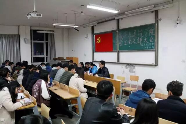 2017年12月7日晚,能源与建筑学院在阎教1220教室召开预备党员发展大会。本次支部大会由学生党支部书记高振江老师主持,参与大会的还有各发展对象的培养人,现有学生党员、预备党员。本次大会的主要议题是:讨论卫美媛,孙瑶池等47名发展对象转为预备党员的问题。