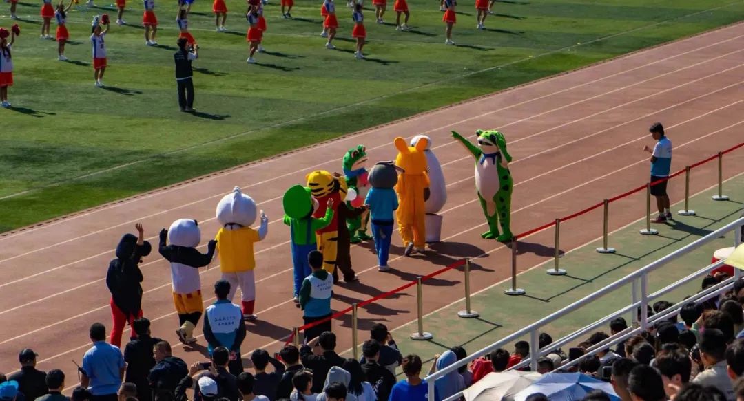 月光洒下,给排水202班肖陶瑜,田野,工管211班孙合翔,及工管212班王倩等学生干部,以身作则,与各位同学一同手臂转起,步伐向前,花球挥动,汗水挥洒,训练学习,在正式表演时穿上厚重的玩偶服,与观众亲密互动,似火的骄阳却也无法阻挡他们随音乐舞动的身影。