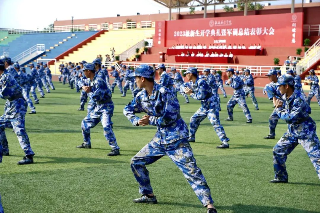 在阵阵欢呼声中,2023级新生军训成果汇报表演正式结束。军训教官最后做总结讲话,殷殷希望,溢于言表。他们对同学们军训期间的表现给予了肯定,希望同学们牢记军训的日子,以勤奋磨练意志,以坚韧不拔的精神攻克人生艰难险阻,努力拼搏,不负韶华。