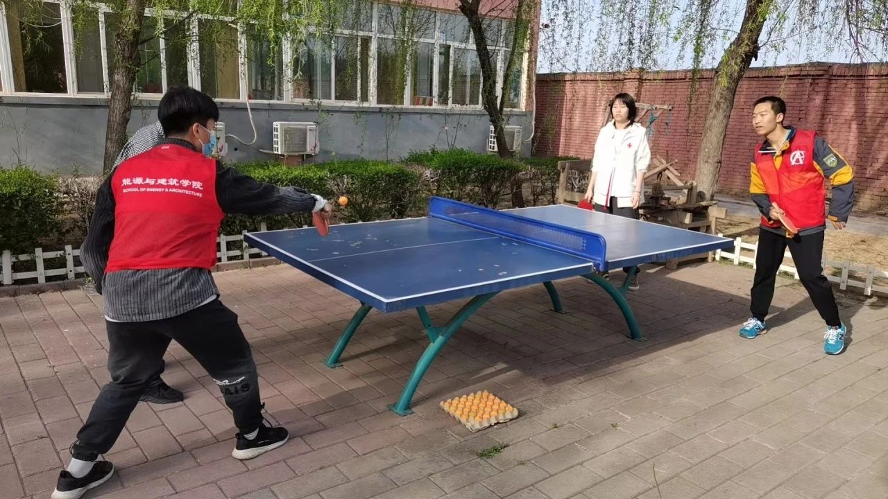 劳动过后,志愿者们开始和老人们进行互动,老人也都纷纷兴奋起来,面对这股青春力量,老人们似乎格外喜爱。有的兴高采烈地与志愿者们打起了乒乓球,比拼起了体力与技巧;有的则围桌而坐,眉头紧锁地与志愿者们下起了象棋,进行头脑的较量;还有的促膝长谈,神采奕奕地与志愿者们讲起了自己年轻时的故事,讲述只属于自己的辉煌人生,好不快活!但同时,有的老人们拉着我们的手问寒问暖,十分关心我们各方面的情况,询问现在的生活还好吗,苦不苦,动作虽简单,但体现出了老一辈们对年轻一代的殷切期望和关怀。或许,在这里老人们很少见到年轻一代的身影出现,以至于我们的到来使他们兴奋异常……