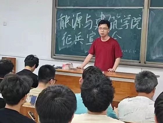 2024年6月13日晚上20:00,能源与建筑学院2024年秋季征兵宣讲会在阎教楼1203教室顺利召开,会议由能源与建筑学院征兵负责老师樊梦云主持,2024年意向入伍学生参加会议。此次会议的主要内容,一是介绍了入伍材料填写、学费补偿减免的注意事项,提醒学生注意申报材料的规范要求和递交时间。二是分享了建筑环境221班陈小杰的入伍过程,并对于学生的疑难困惑进行专业的解答。