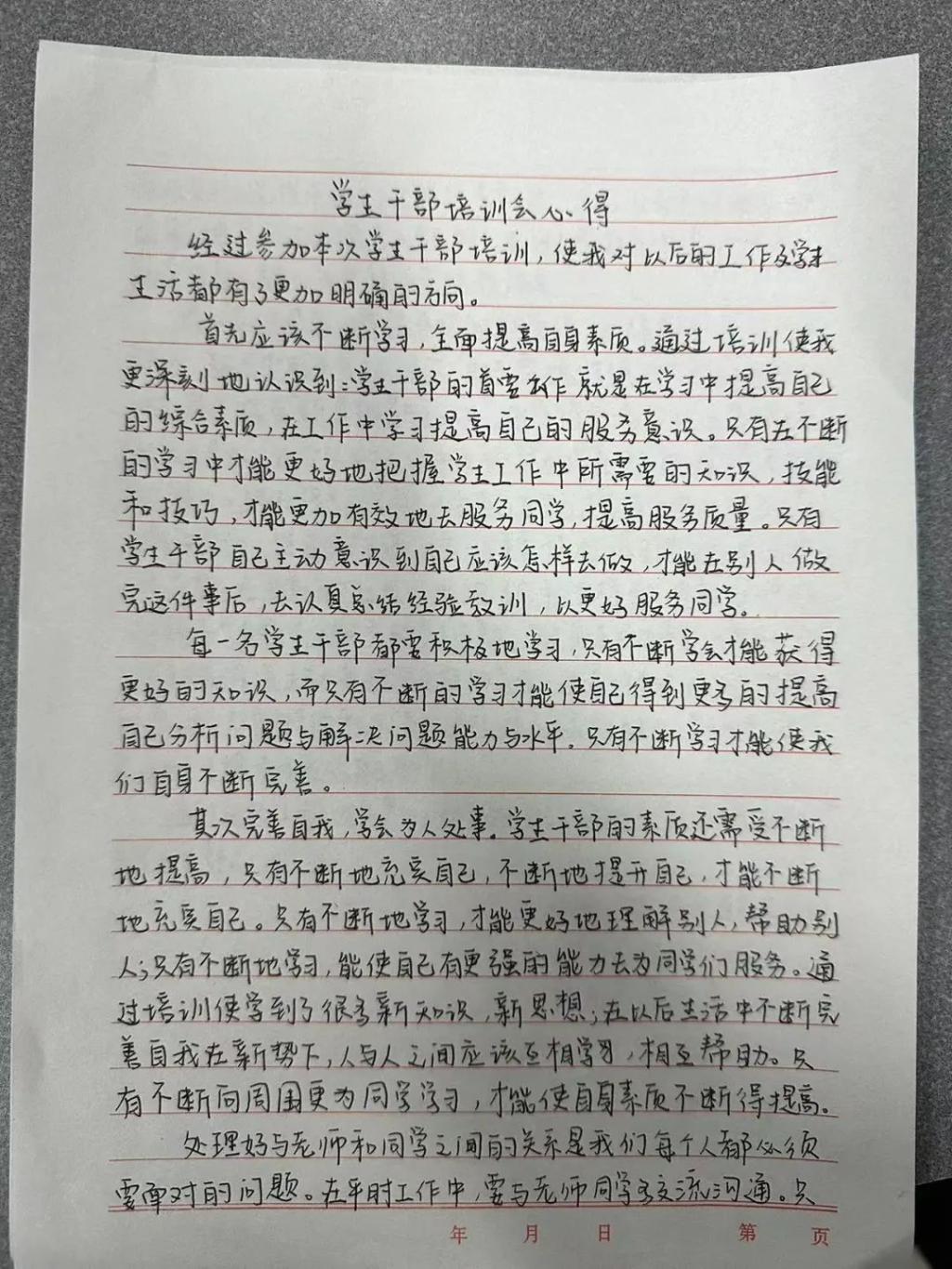 在交流会中,首先评议和筛选出了一系列的优秀心得并组织全体学生干部交流学习优秀心得,将优秀心得在学院内进行公示,让全院同学进行学习。