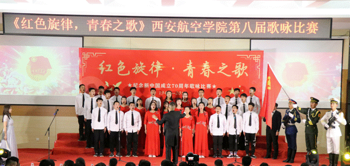 本次歌咏比赛有6支队伍依次登台亮相,分别是飞行器学院《中国军魂》、材料工程学院《我爱你,中国》、能源与建筑学院《东方之珠》、电子工程学院《我爱你中国》、士官学院《强军战歌》、机械工程学院《走向复兴》,用歌声回顾党的光辉历史,抒发深沉的爱国情怀,以更加奋进的磅礴气势和火热的爱国之心,唱出当代大学生庆祝中国成立70周年的喜悦心情。