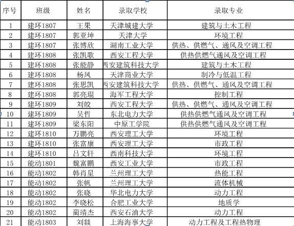 能源与建筑学院始终秉持“团结、务实、高效、创新”的工作理念,始终贯彻“以学生为本”的工作宗旨,在今年考研压力骤增的情况下,学院想方设法为考研学生创造良好的考研环境,如在三号公寓开设四个不熄灯的考研自习室,为考研学生提供便利。经过我院全体师生共同努力,2018年学院取得了良好的考研成绩:学院2018届毕业生共计321人,62人报考硕士研究生,30人达到国家分数线,录取21人,其中一名学生被“985”院校录取,两名学生被“211”院校录取,录取质量及人数较比往年稳步增长。