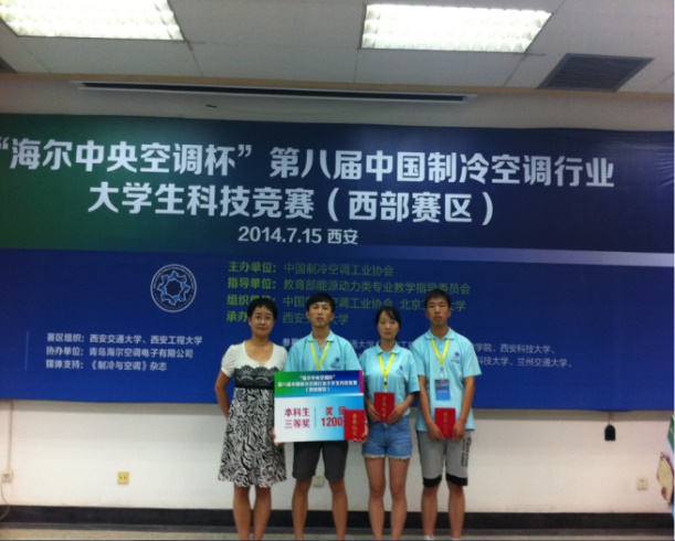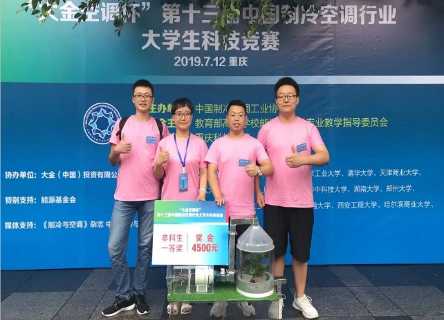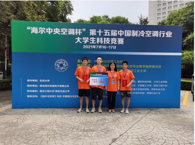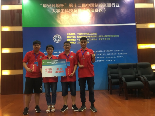 我校学生近三年参加“中国制冷空调行业大学生科技竞赛”获奖情况如下:2021年荣获国家 “二等奖”;2020年荣获国家 “三等奖”;2019年荣获国家 “一等奖”。