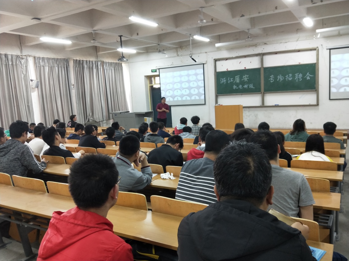 招聘会上,张经理为同学们详细介绍了浙江盾安机电科技有限公司的基本情况:浙江盾安机电科技有限公司是浙江盾安人工环境股份有限公司旗下的全资子公司,专业生产各种中央空调主机及末端设备,是多个中央空调国家标准起草单位,是国内领先的HVAC设备集成商,系统节能方案提供者,是中广核集团、中核集团、国家电力投资集团核心供应商。本次招聘的岗位有:机械类、电器类、机电一体化、自动化、暖通、建筑环境与设备工程等专业。