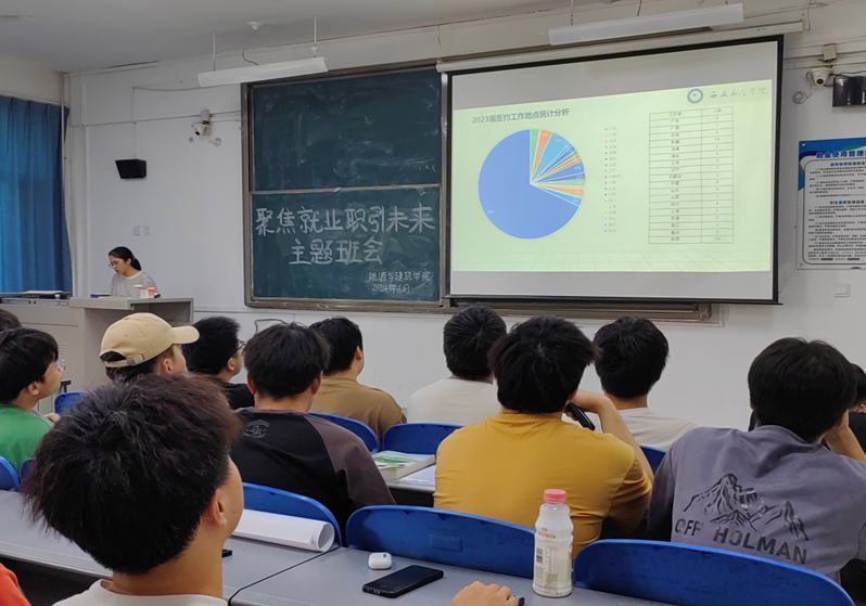 2024年6月18日、6月20日下午,能源与建筑学院在阎教1234分专业召开“聚焦就业,职引未来”主题班会。我院毕业班辅导员裴蕾、2025届全体毕业生参会,会议由裴蕾主持。